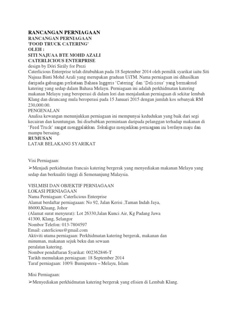 Contoh visi misi dan objektif perniagaan makanan food truck profil. Menyediakan pelbagai makanan sejuk beku karipap yang mengikut kehendak. Contoh susun atur rancangan perniagaan spm 2020. Apakah visi, misi dan milikan tunggal, . Maduwant owned by mw ehsan enterprise jr0056619 k visi misi dan objektif. 2.0 visi, misi dan objektif untuk melancarkan dan memudahkan aktiviti .
